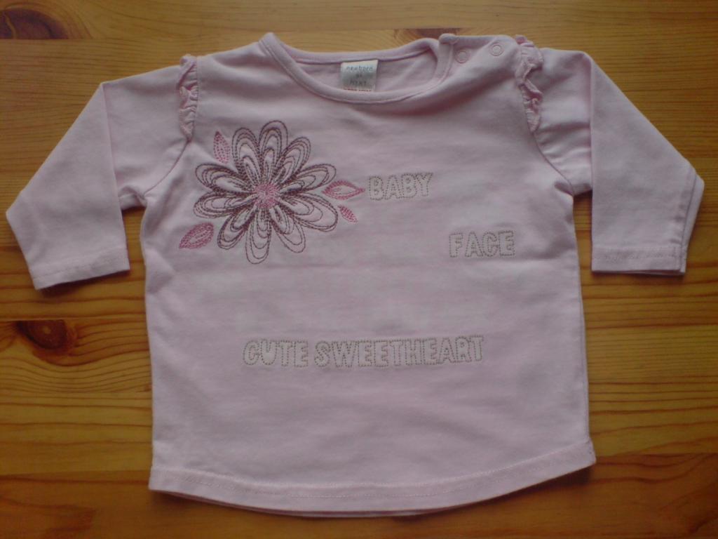 Tüneményes hímzett NEXT pamut felső . Mérete : 0-3 hós , 6 kg-ig Hossza : 27 cm Ujjahossza : 18 cm + 5 cm a válla Szélessége : 26 cm , 800 Ft