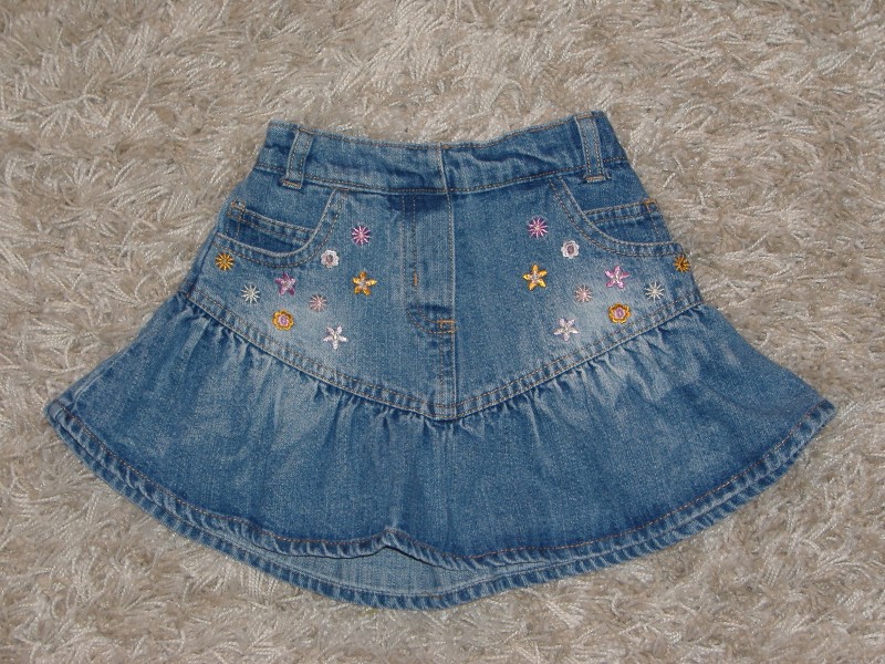 TINY TED hímzett-koptatott farmerszoknya,18-23 hós,h25 cm,d22 cm,900 Ft