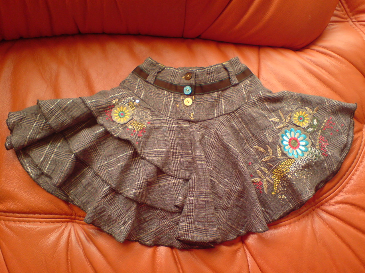 Meseszép , extra pörgős , hímzett flitteres Marks & Spencer szövet szoknya . Mérete : 1,5-2 éves , 90-es Hossza : 32 cm Dereka : max 22 cm , szabályozható