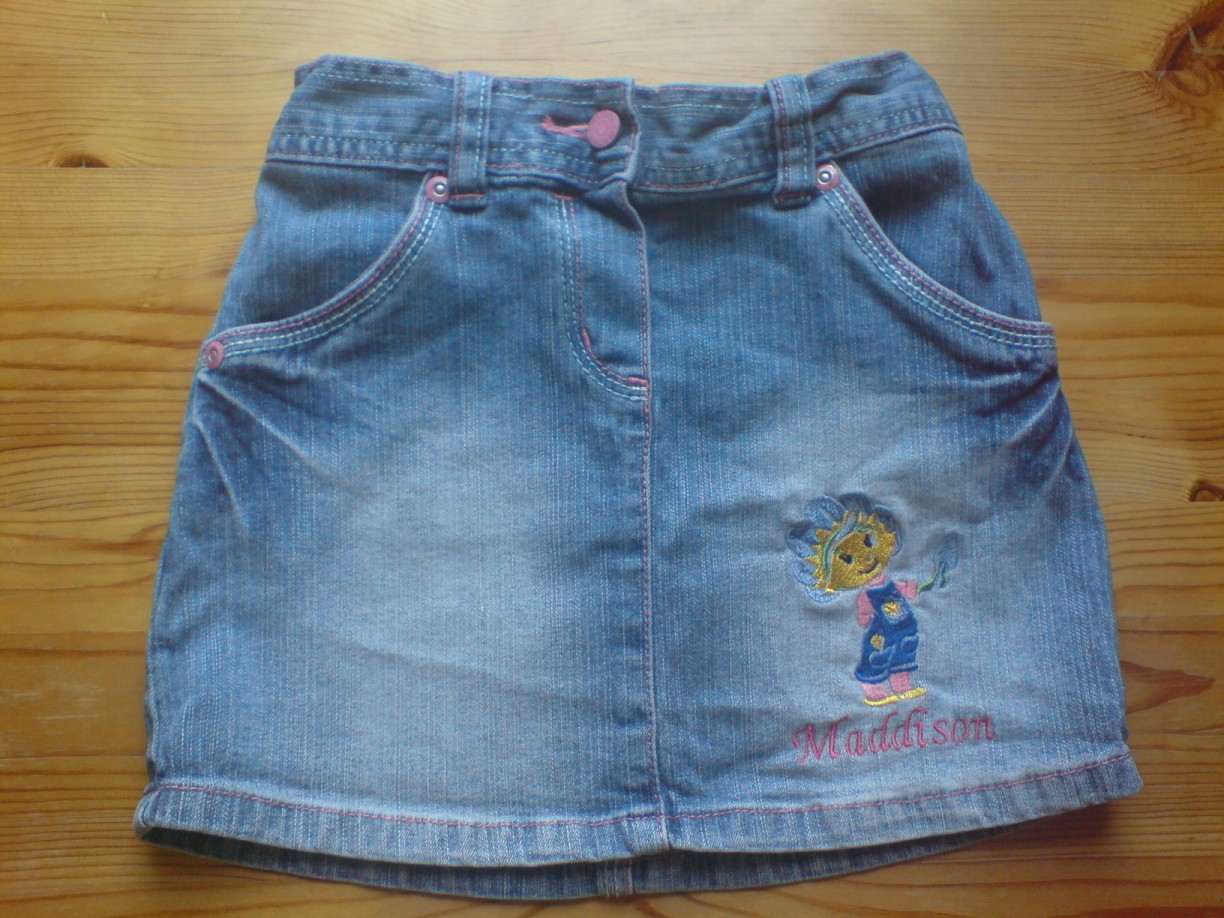 Hímzett FIFI -s Cherokee farmer szoknya . Anyaga elasztikus . Mérete : 2-3 éves , 98-as Hossza : 28 cm Dereka : max 29 cm , szabályozható , 1250 Ft