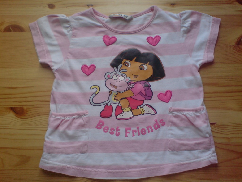 (FOGLALVA) DORA the explorer pamut póló .98-104-es , 3-4 éves,h 37 cm,sz 32 cm,850 Ft