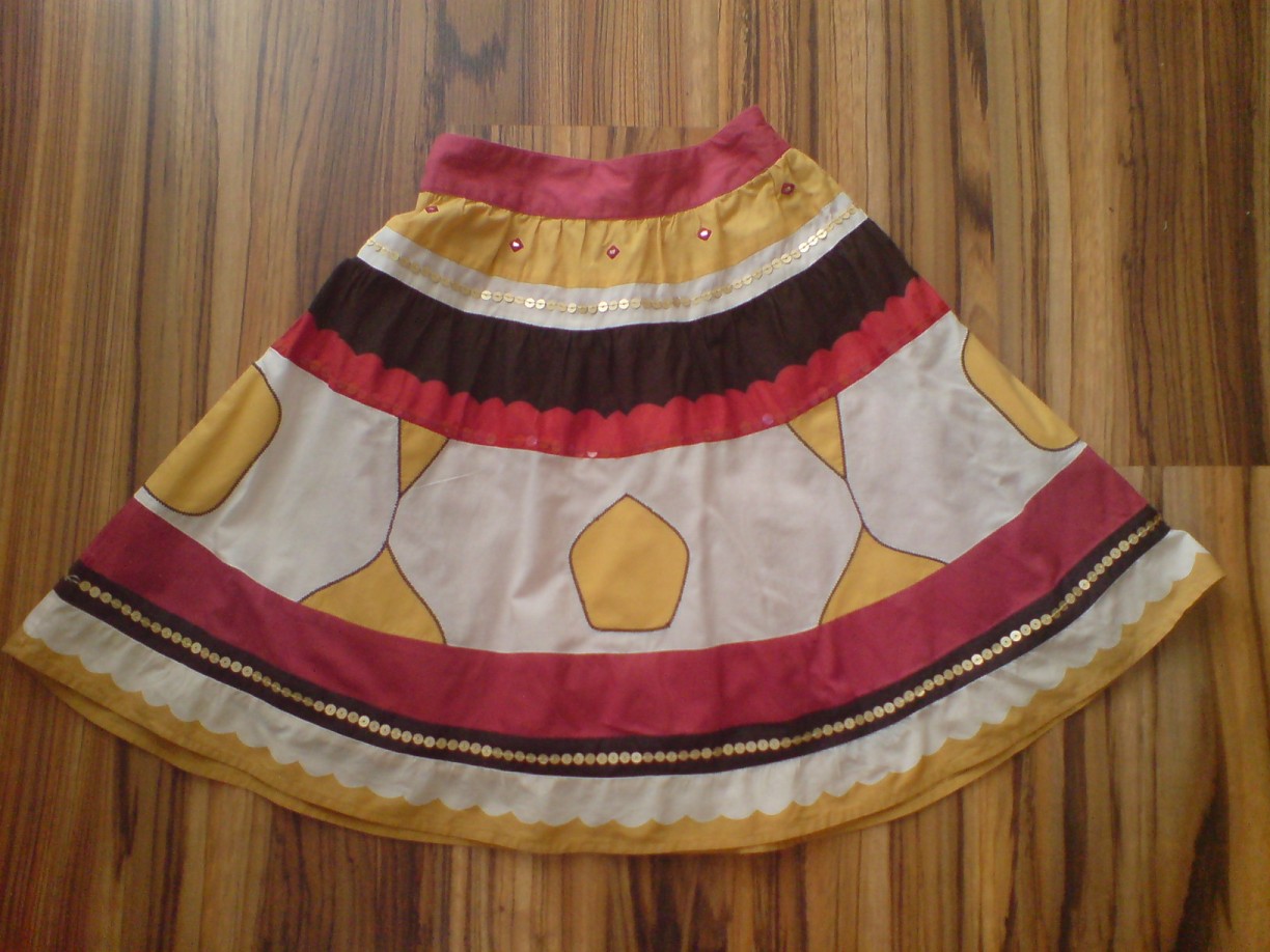 Gyönyörű hímzett flitteres NEXT vékony pamutvászon szoknya . Mérete : 7 éves , 122-es Hossza : 47 cm Dereka : 27 cm , oldalában zipzár