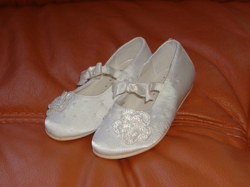 Egyszer használt,gyönyörűséges,gyöngyökkel díszített,BHS márkájú (angol),ekrü színű szatén cipellő .